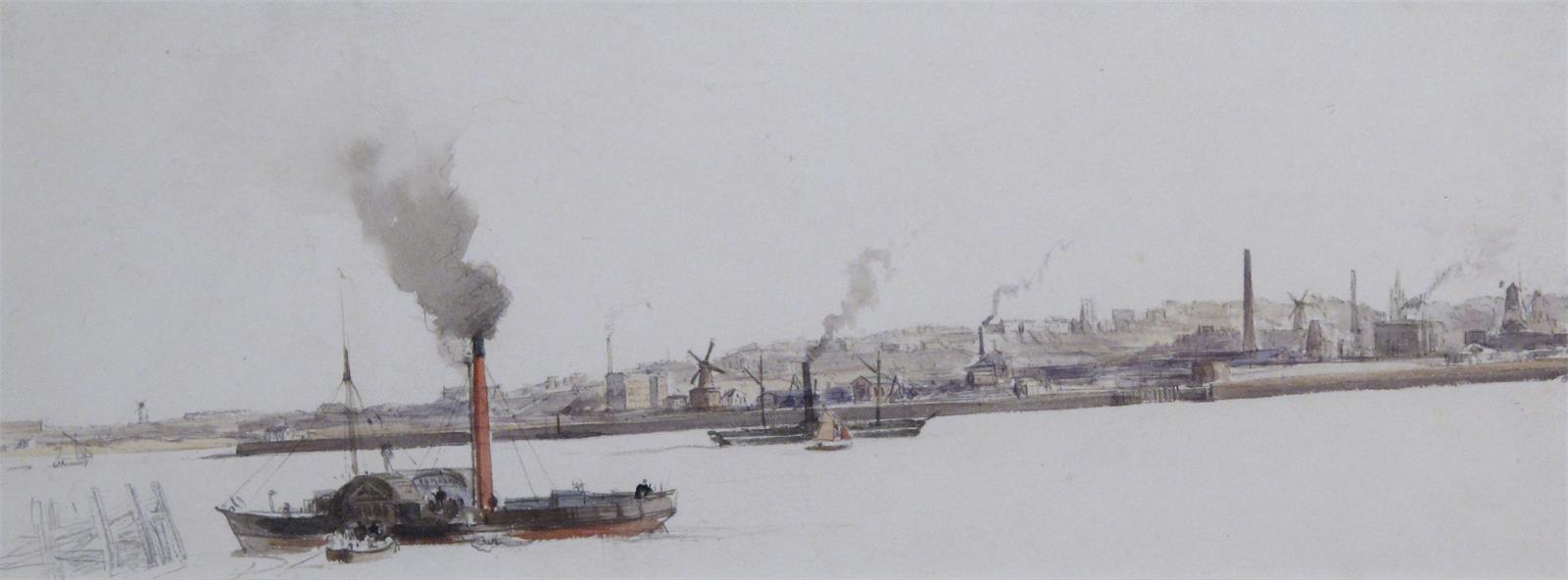 George Chambers (1803-1840) Paddle steamer and shipping in the Thames Watercolour 13 x 34.25cm; 5...