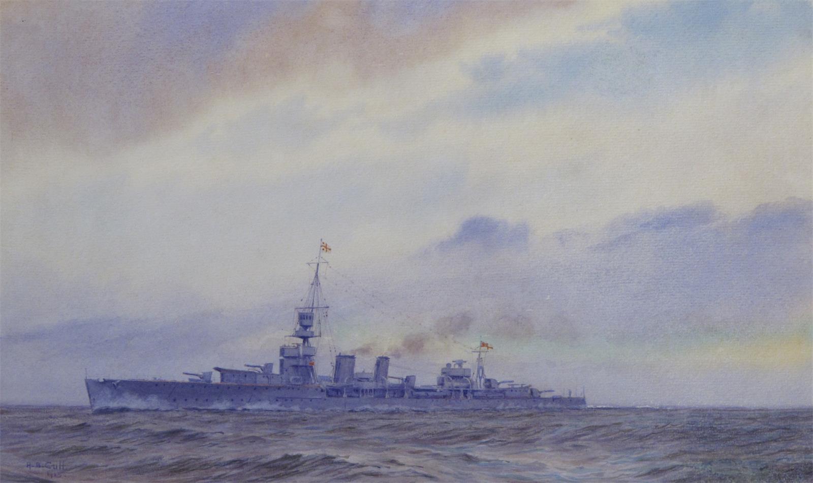 Alma Claude Burton Cull (1880-1931) D class cruiser at sea Signed and dated 1925 Watercolour 22.5...