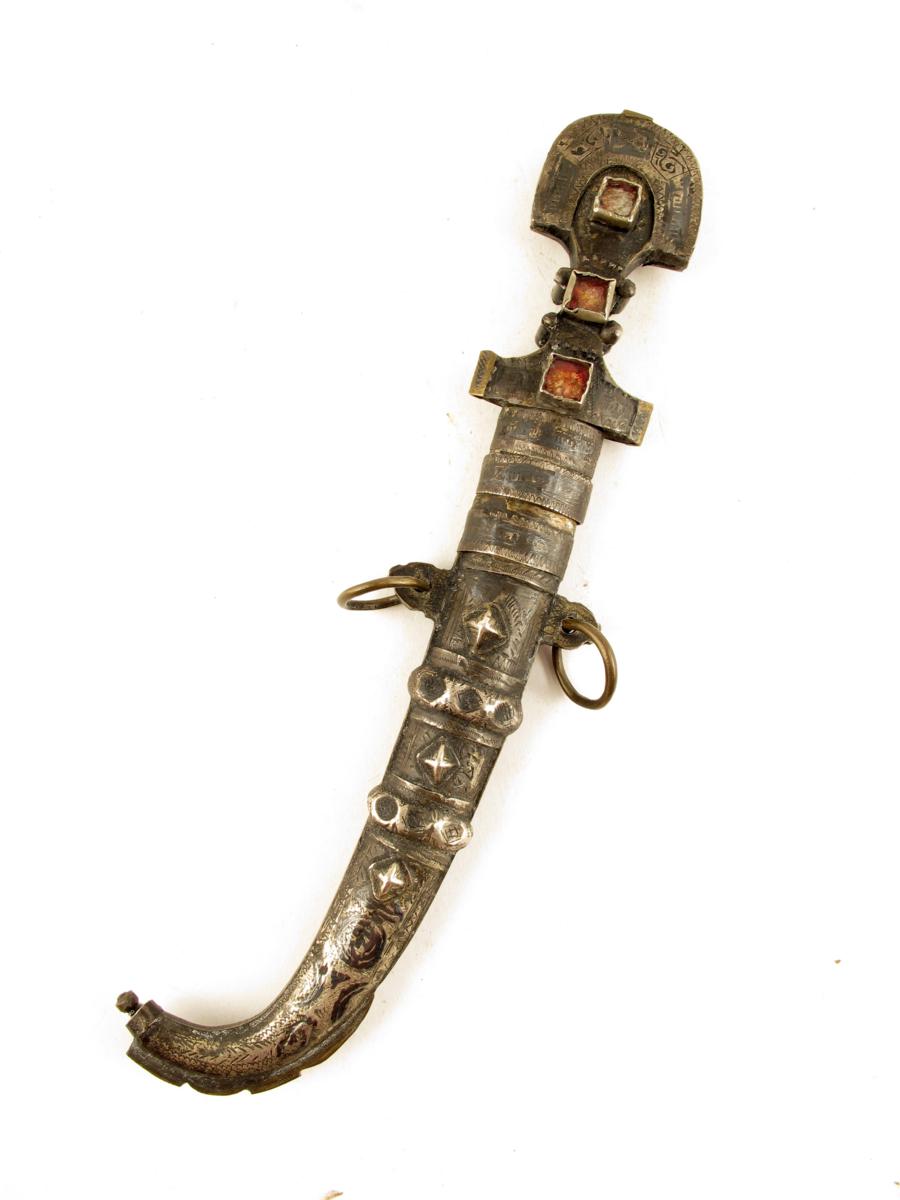 A small brass and white metal jambiya