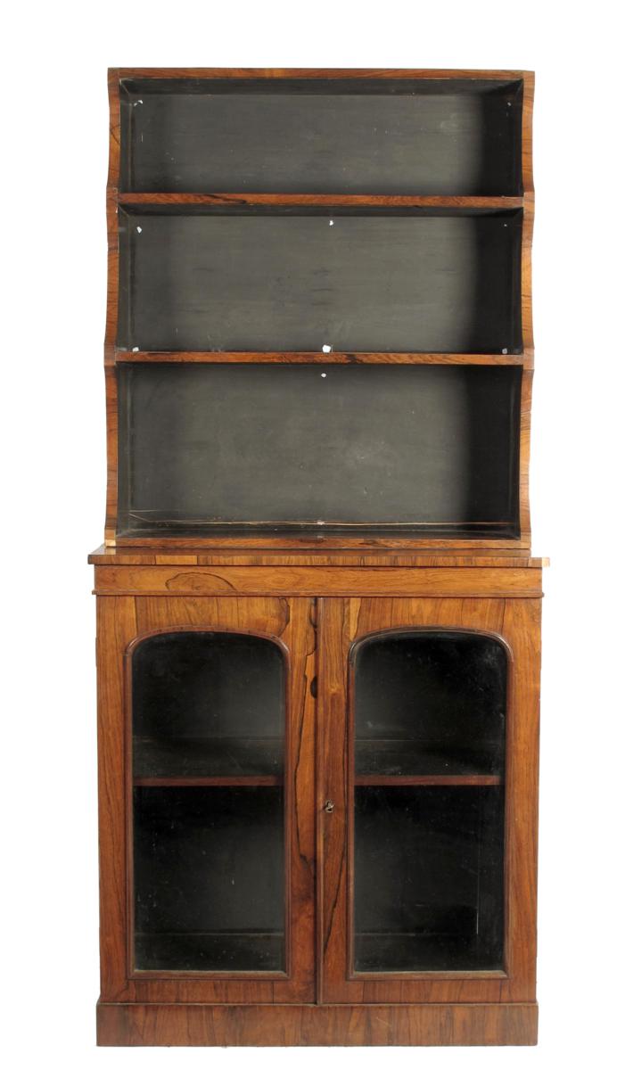 A rosewood open bookcase on cabinet, 66½in (169cm) high, 30½in (77.5cm) wide, 15in (38cm) deep.