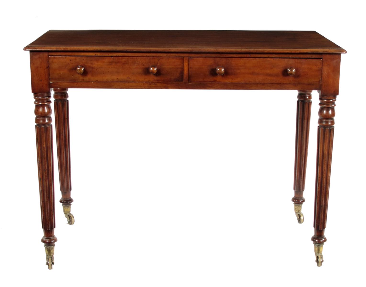 A William IV mahogany side table in the manner of Gillows, on ribbed tapering legs to brass castors, 30¾in (78cm) high, 41¾in (106cm) wide, 21¼in (54cm) deep.