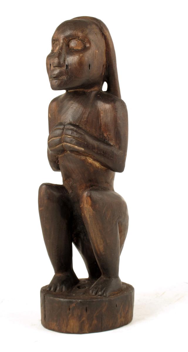 A carved wood seated figure