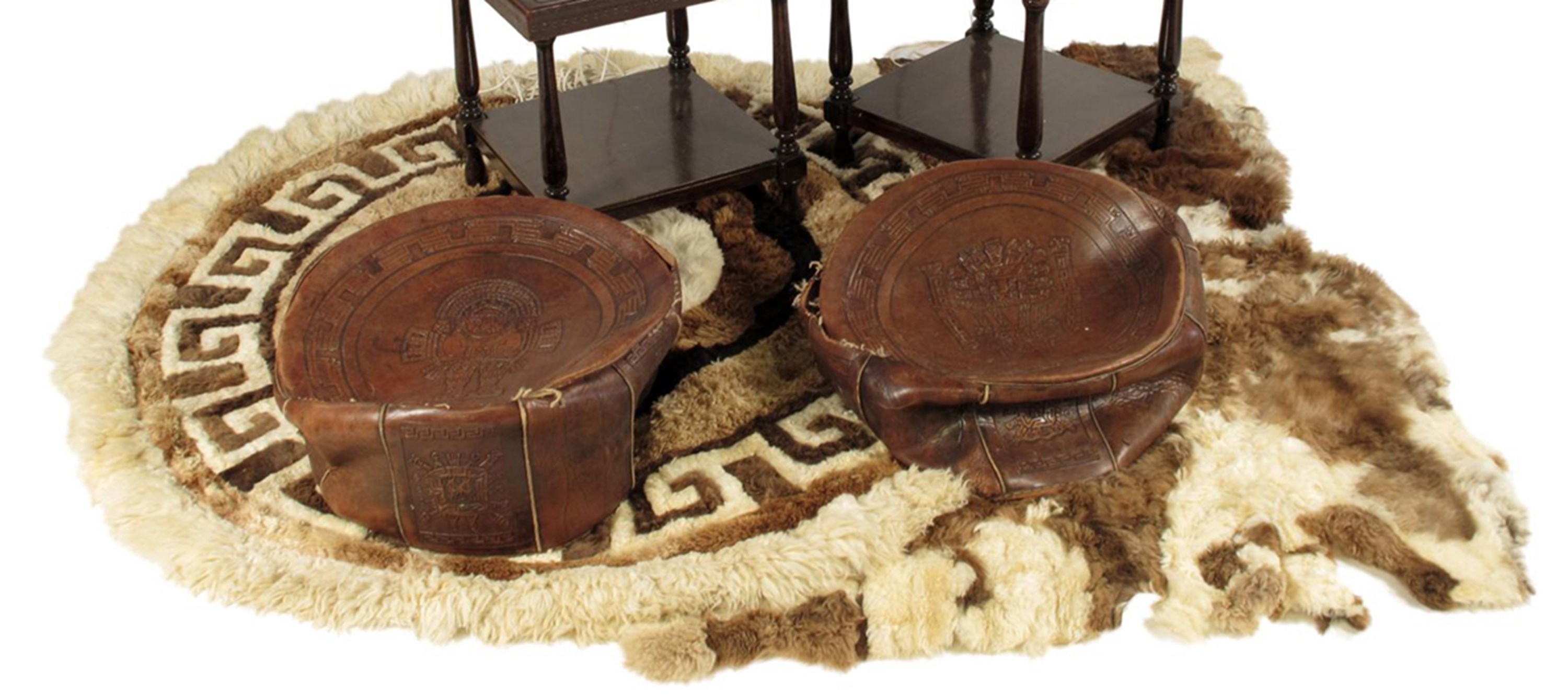 Two Peruvian wool rugs; one circular with a key border, 66in (167.5cm) diameter and 67 x 47in (170 x 119cm). (2)