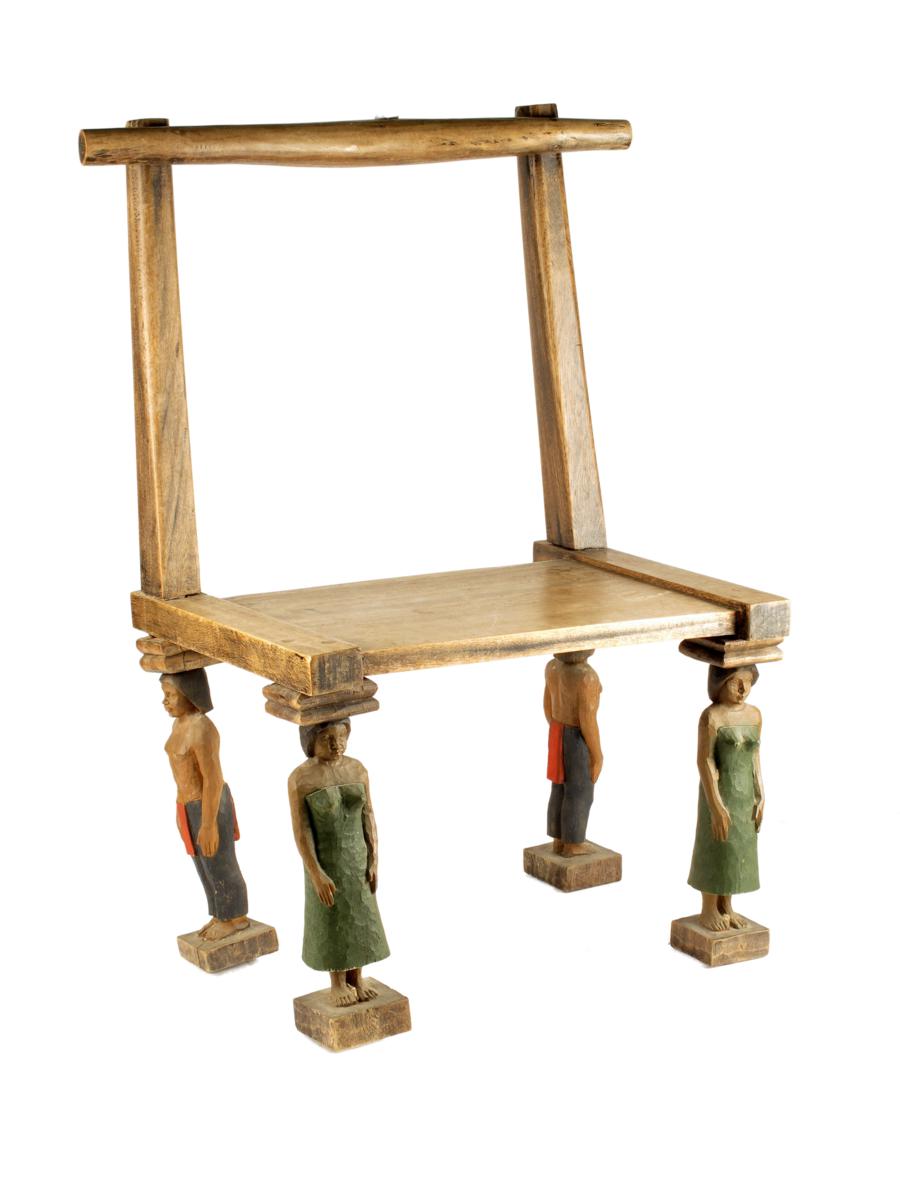 A low chair, with carved and painted figural legs, 30¾in (78cm) high.
