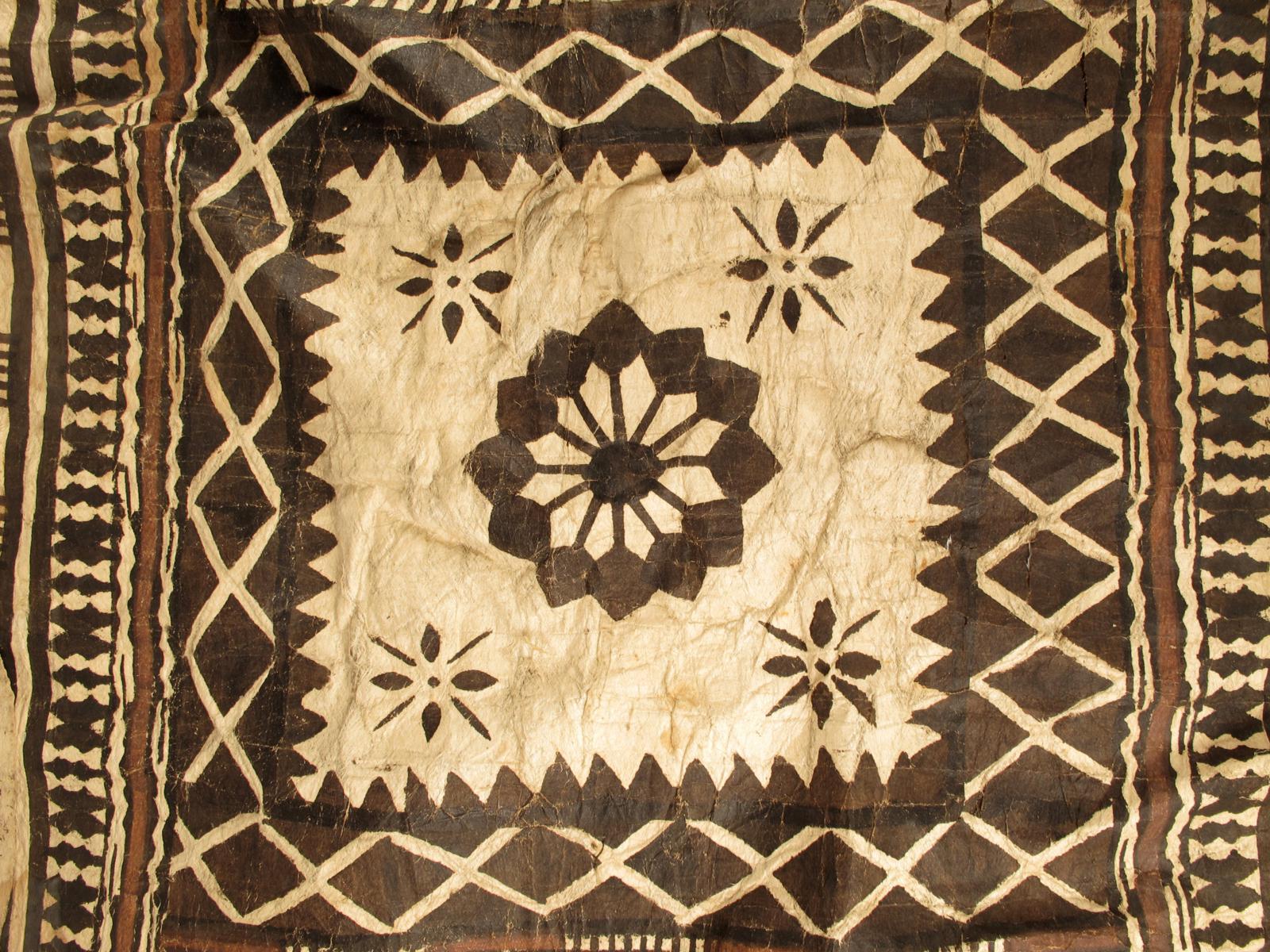 A Fiji tapa cloth, with six geometric panels, 134 x 30¼in (330 x 77cm)