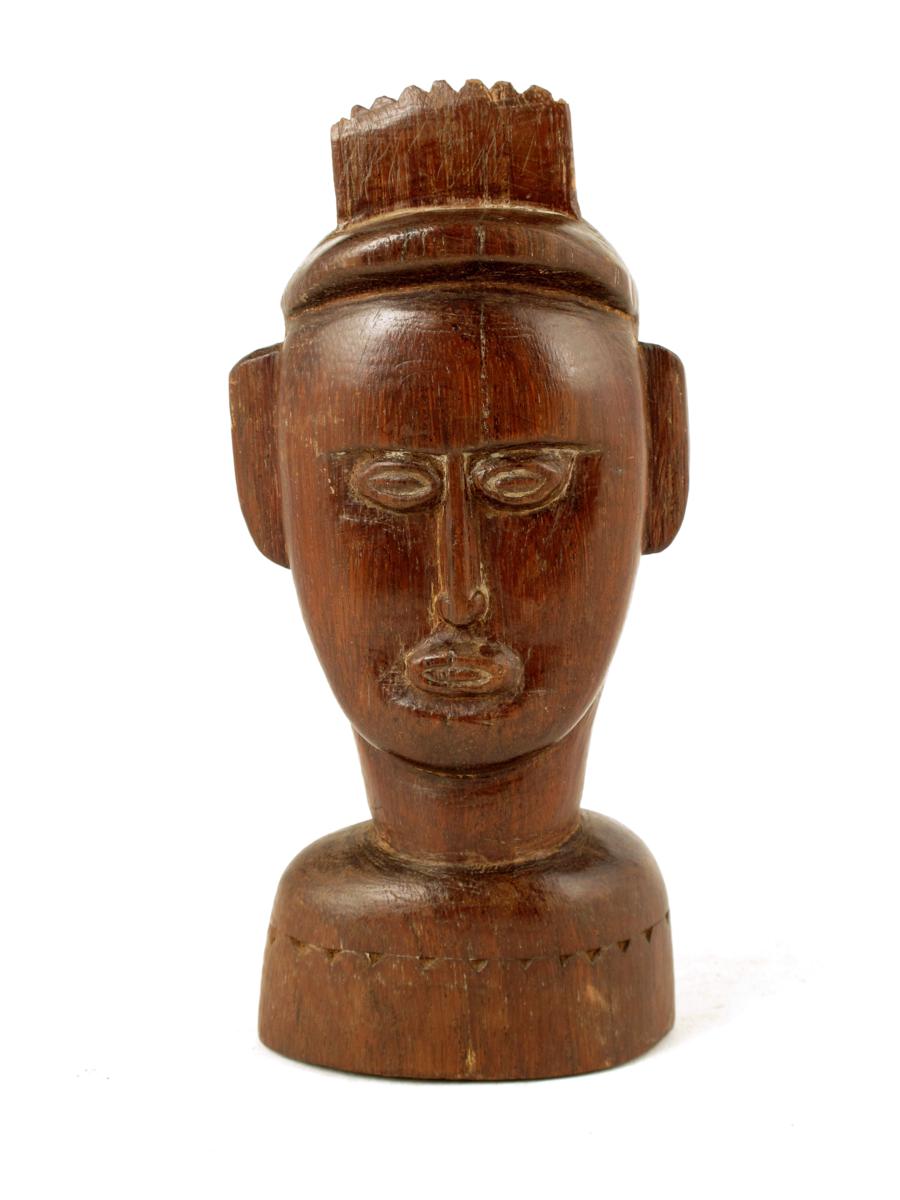 A Rapa Nui carved wood bust, with serrated edge crest, 7¼in (18.3cm) high.
