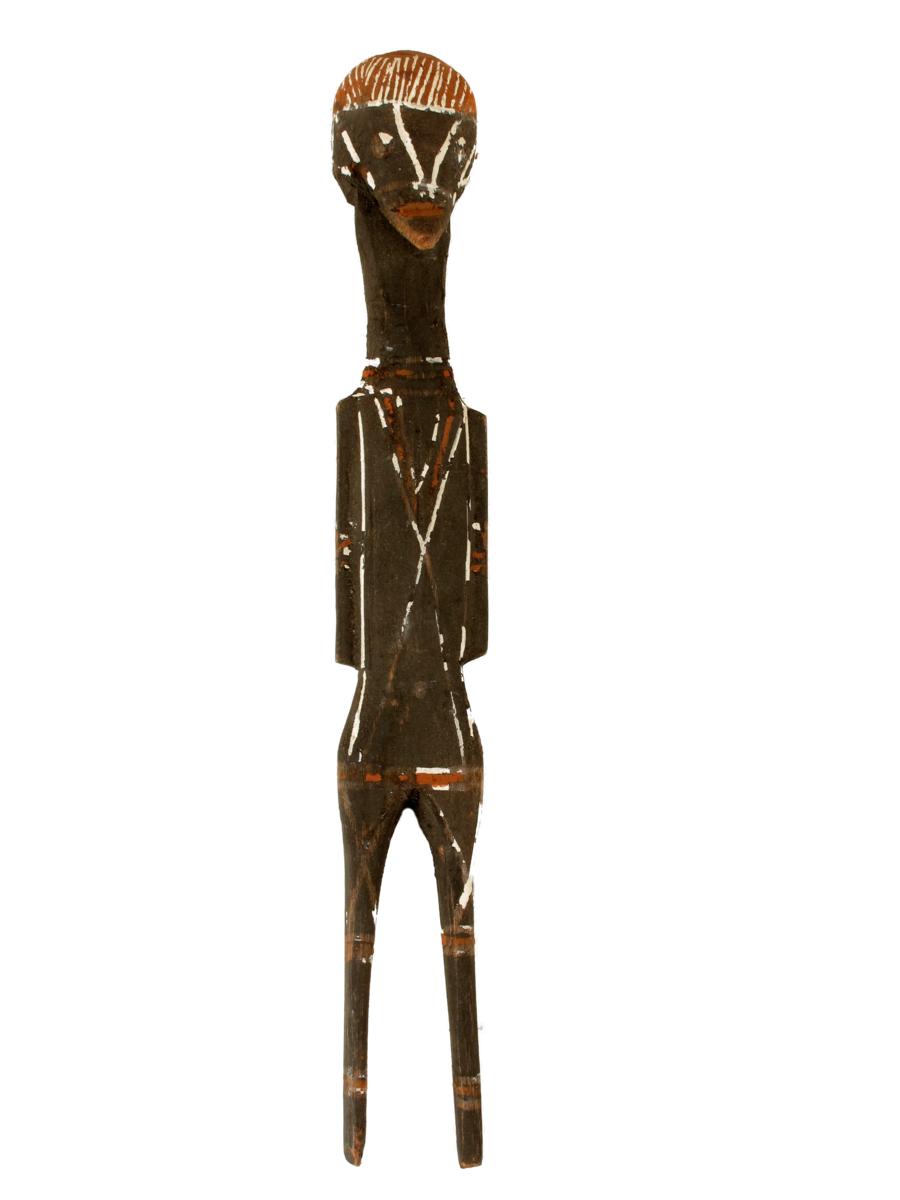 A Bathurst Island tiwi figure, ebonised wood with rust and white pigment decoration, 14½in (37cm) high.