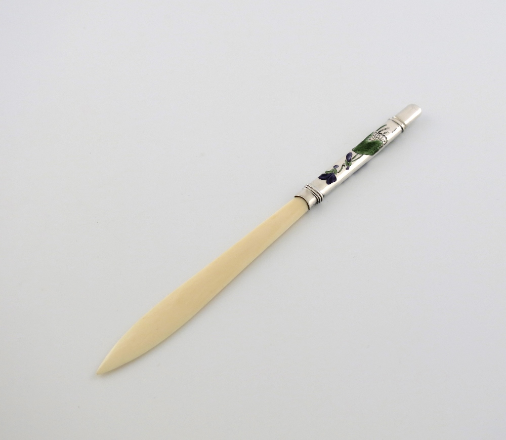 λ An Austro-Hungarian silver and enamel mounted paper knife / pencil