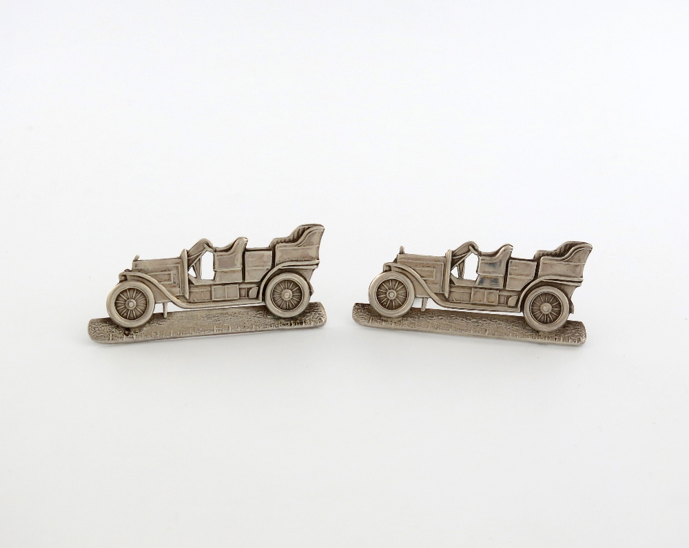 modelled as the Rolls Royce Silver Ghost, wirework supports, length 6.7cm, approx. weight 1.1oz. (2)