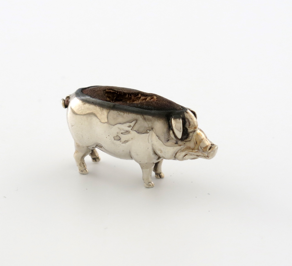 An Edwardian novelty silver pig pin cushion