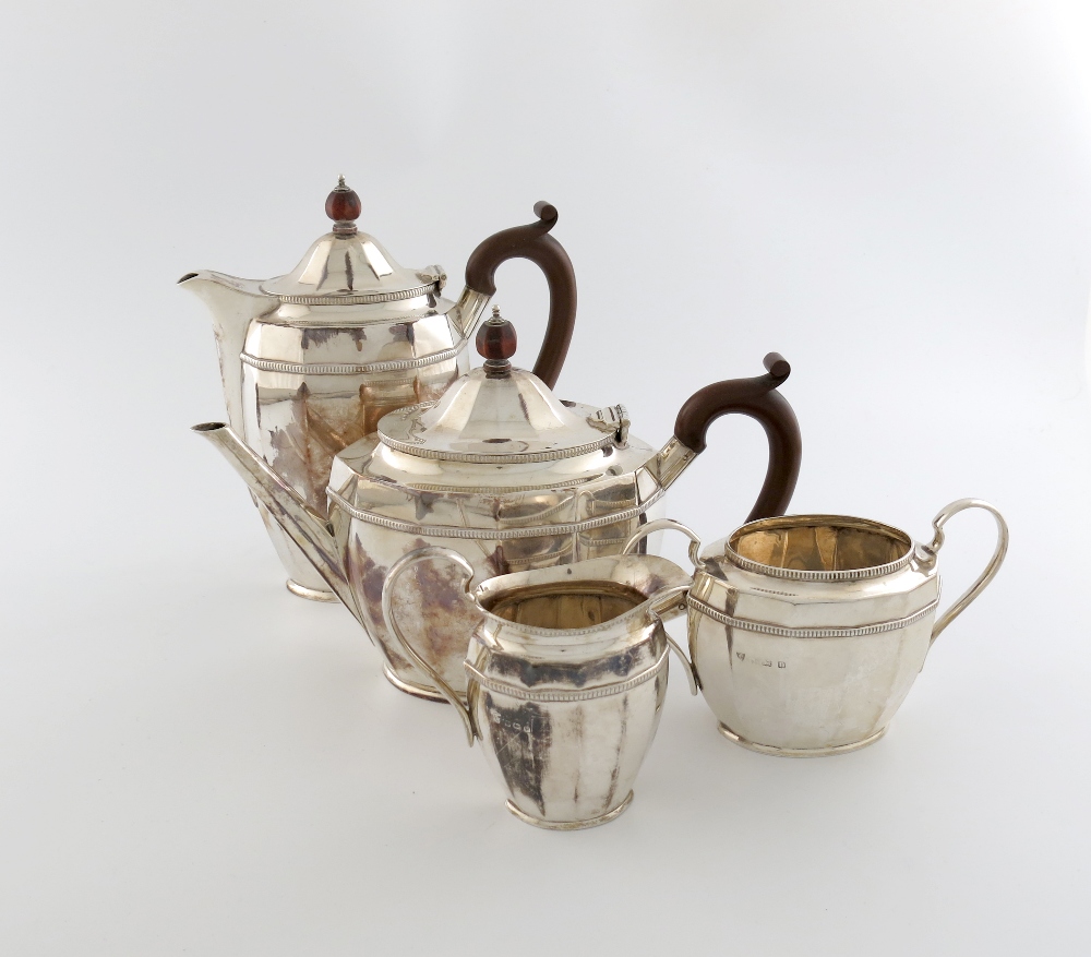 A four piece silver tea set