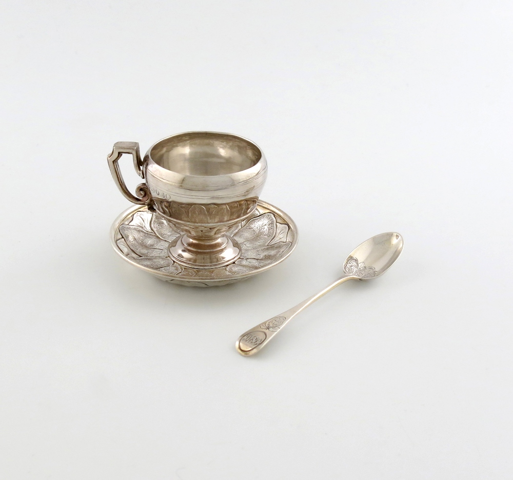 A Victorian silver cup, saucer and spoon,