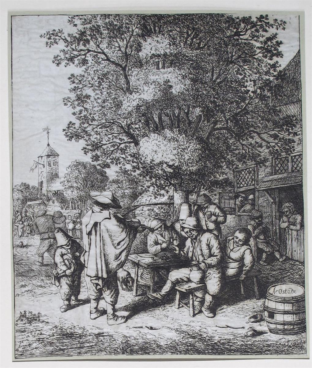 With two others by Ostade and 14 further Dutch etchings by David Teniers, Paulus Potter and others, all unframed (17)