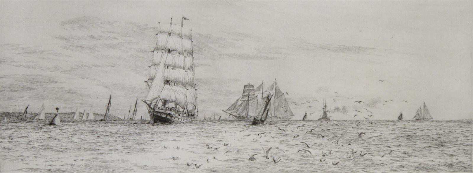 William Lionel Wyllie R.A. (1851-1931) Tall ships off the Isle of Wight Signed Etching 12.5 x...