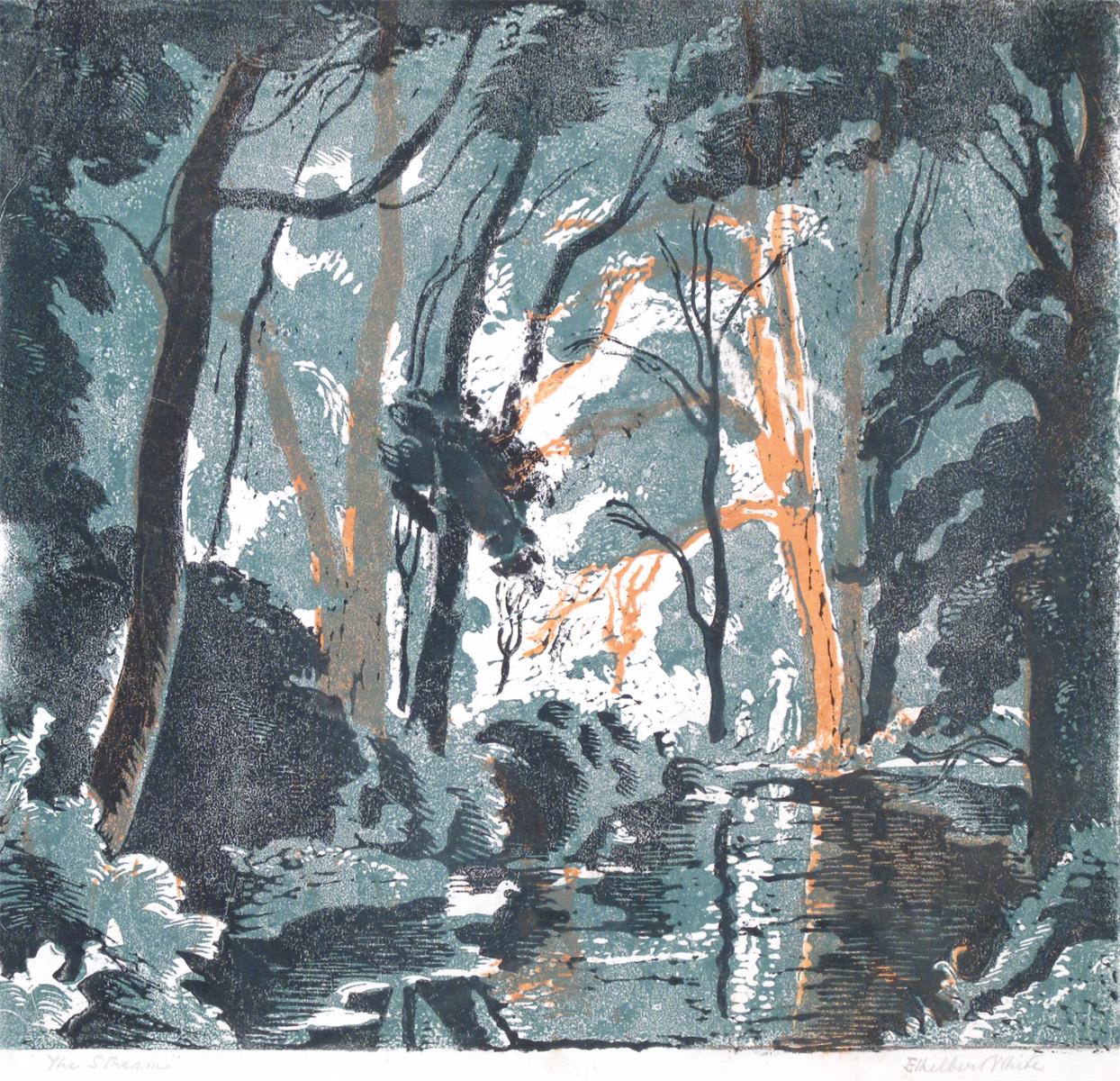 ‡Ethelbert White (1891-1972) The stream Signed and titled Linocut 36.5 x 40.5cm; 14 x 16in With a...
