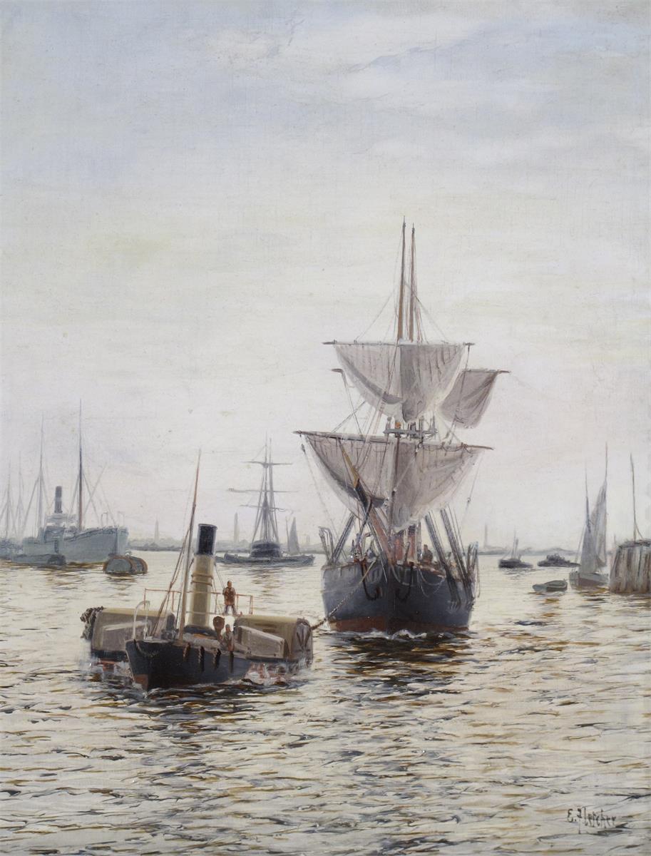 ‡Edward Fletcher (1851-1945) Shipping at Tilbury Signed Oil on canvas 54 x 42.5cm; 21 x 17in...