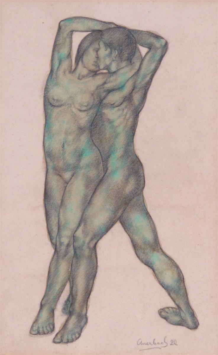 Attributed to Arnold Auerbach (1896-1979) Two lovers Signed and dated 1922 Pastel and black...