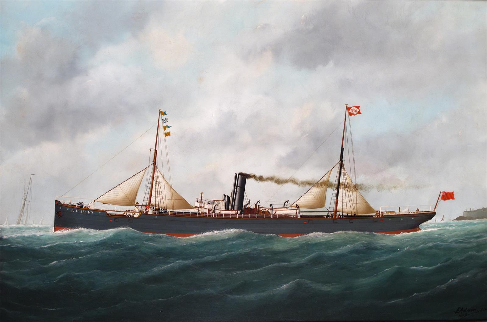 Edmond Victor Charles Adam (French 1868-1938) Steam vessel Rubens leaving Le Havre Signed and...