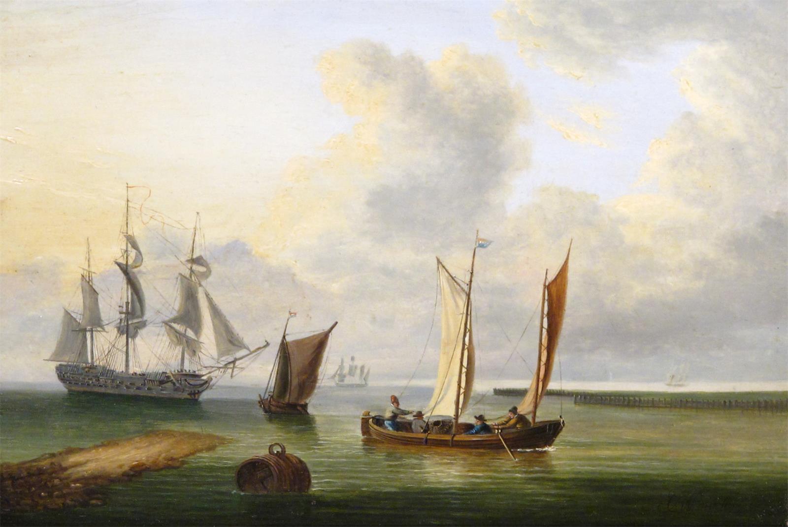 Charles Martin Powell (1775-1824) Dutch fishing boats and a three-master off the coast Signed