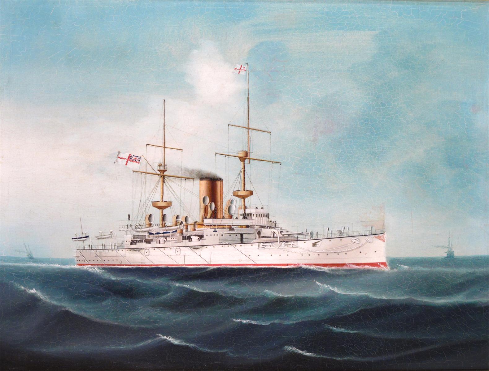 Chinese School c.1895 The battleship H.M.S. Centurion at sea Oil on linen 47 x 60cm; 18½ x 23¾in...