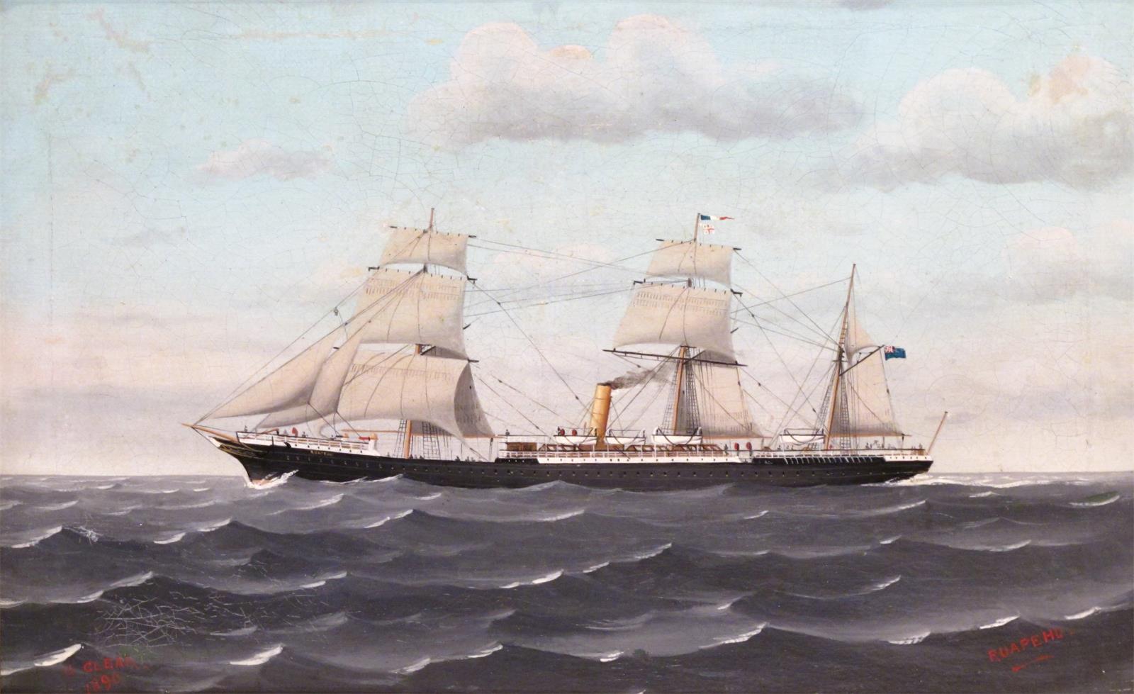 G. Clear (c.1890) Steam and sailing ship Ruapehu Signed