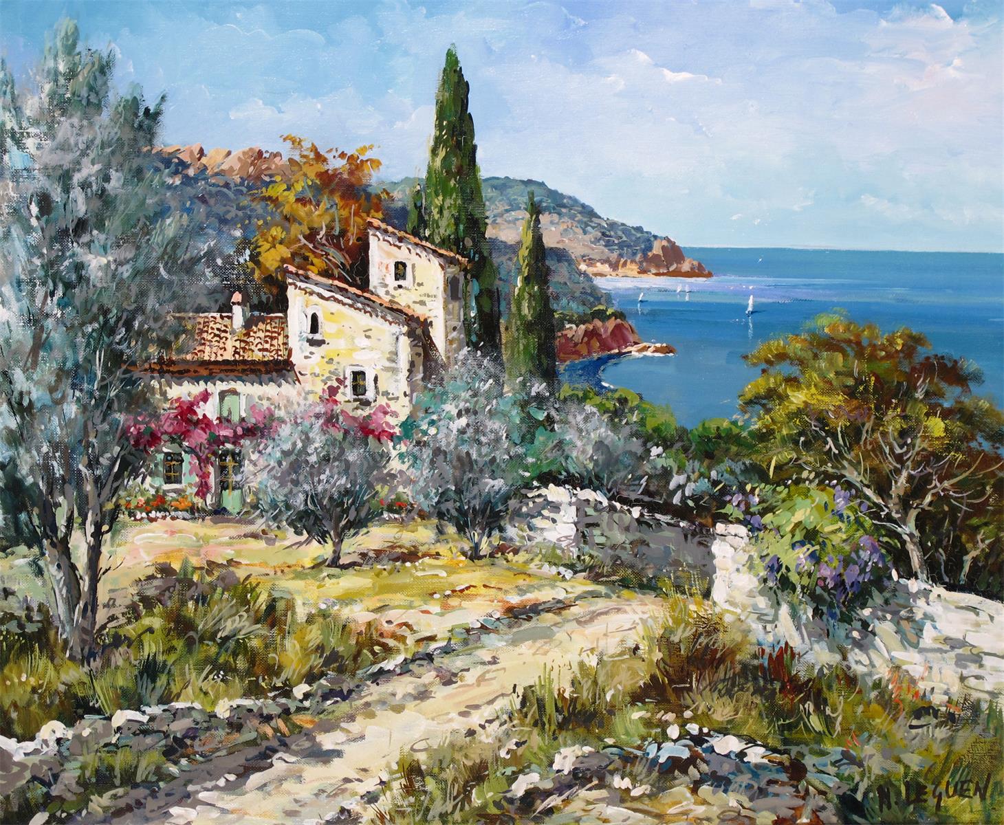 ‡Nicole le Guen (20th Century) Riviera in summer Signed Oil on canvas 46 x 55cm; 18 x 21½in