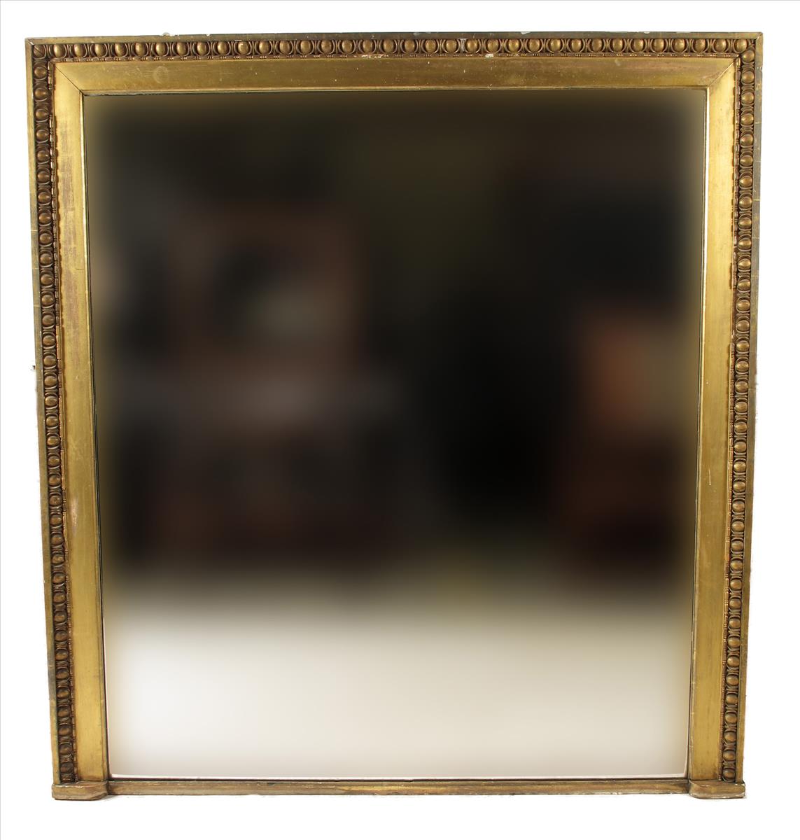 A late Victorian giltwood and gesso overmantel mirror, with an egg and dart border, 65 x 60½in (165 x 153.6cm).