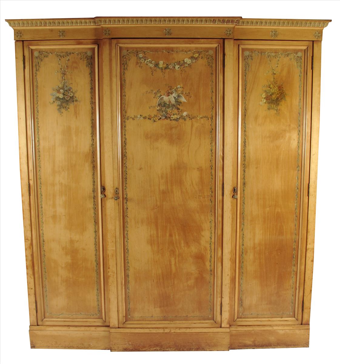 A German painted satinwood wardrobe by Kimbel & Friederichsen, 89in (226cm) high, 79in (201cm) wide, 28½in (72.5cm) deep.