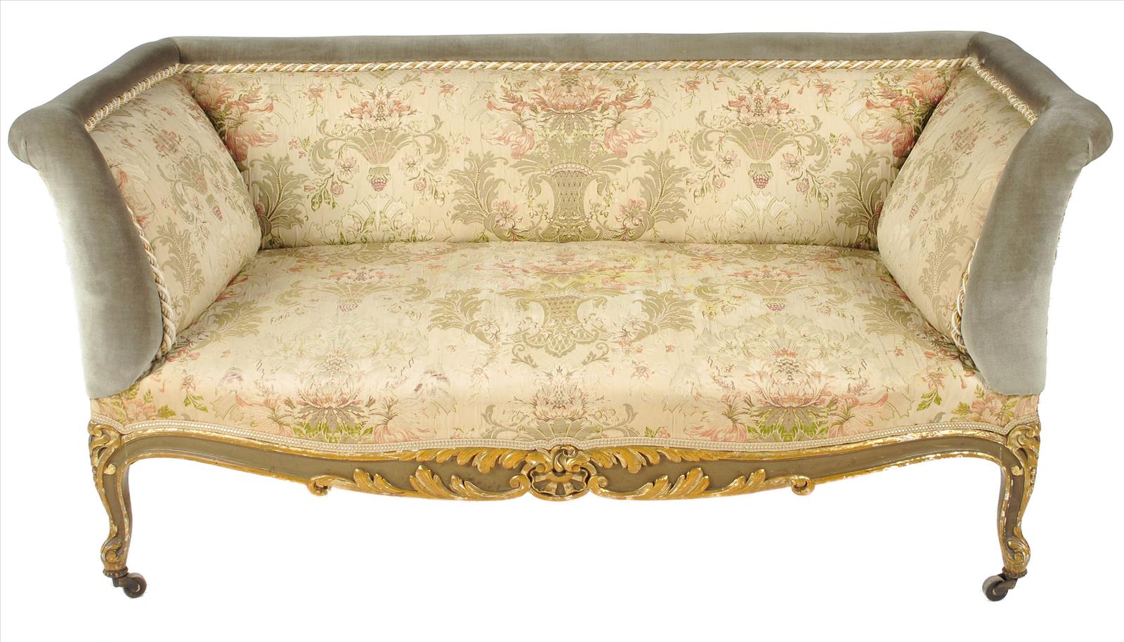 A late 19th century French giltwood and gesso settee