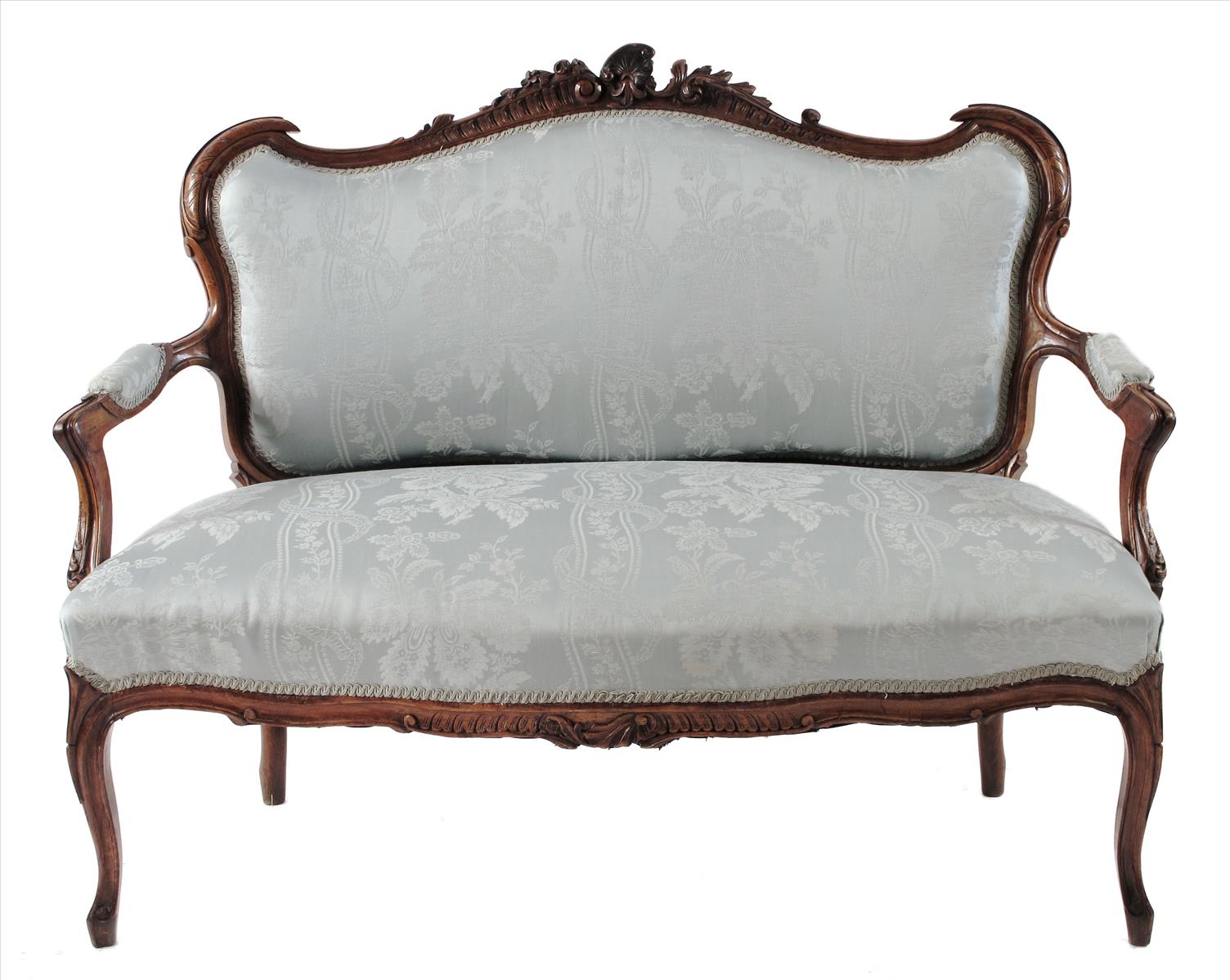 A French carved walnut settee