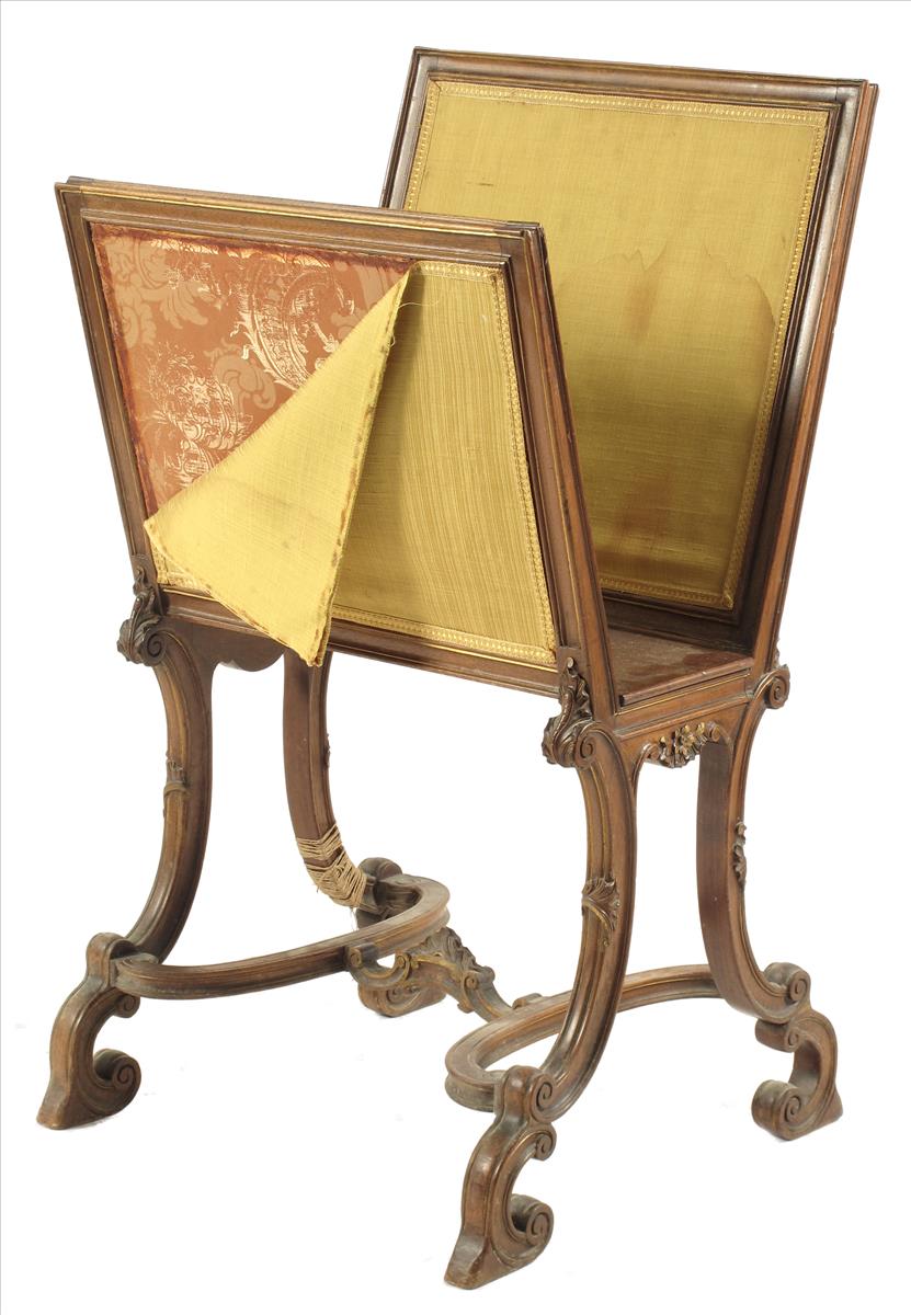 A late 19th century French carved walnut and parcel gilt folio stand, 35½in (90cm) high, 19¾in (50cm) wide, 19½in (49.2cm) deep.