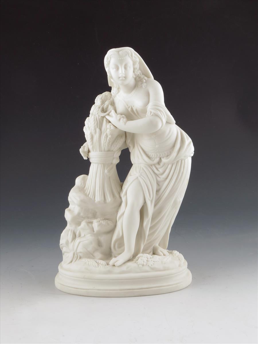 A 19th century Parian figure of a lady with a sheath of corn, 13¾in (35cm) high.