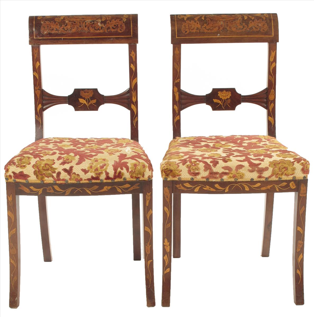 A pair of 19th century Dutch marquetry side chairs
