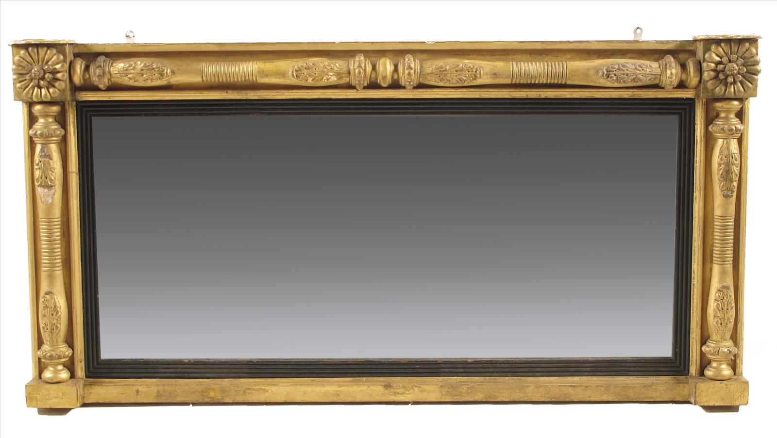 A mid 19th century giltwood and gesso landscape overmantel mirror