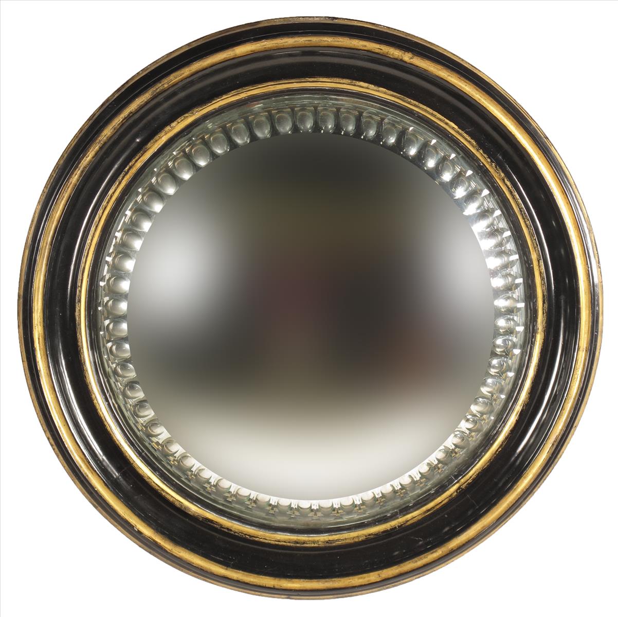 A Victorian ebonised and parcel gilt convex wall mirror, the plate decorated with an outer band of cut ovals, 23¼in (59cm) diameter.