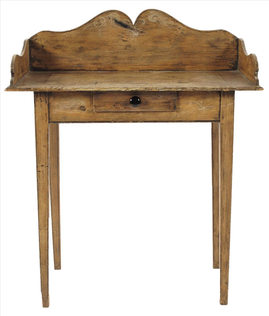 A Victorian painted pine washstand, the galleried top above a single drawer, 37in (95cm) high, 32in (81.5cm) wide, 18½in (46cm) deep.