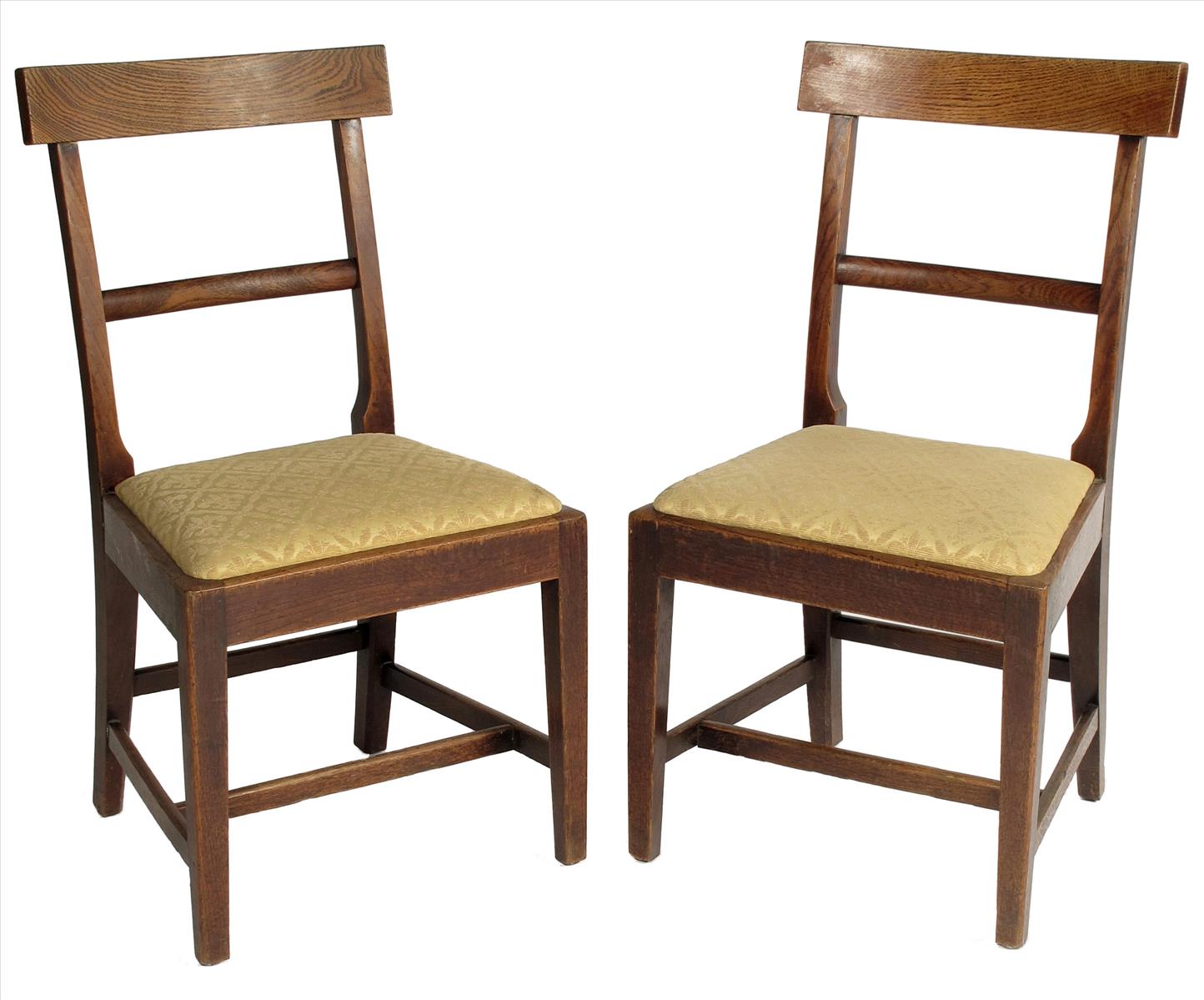 A pair of early 19th century oak side chairs, each with a later drop-in seat. (2)