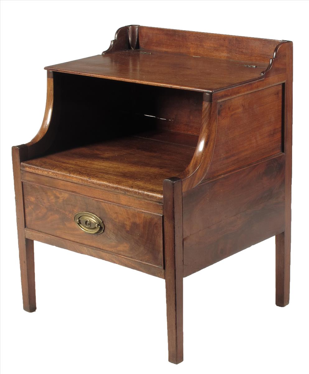 A George III mahogany 'Lancashire' commode, with panelled sides and a vacant interior, 29½in (74.8cm) high, 22½in (57.1cm) wide, 19¾in (50.4cm) deep.