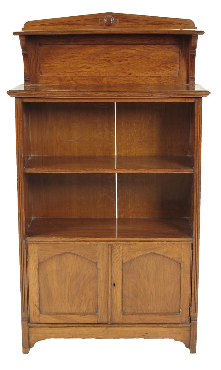 A late Victorian oak cabinet by H. Ogden, the right door stamped 'H.OGDEN, MANCHESTER, 6676,' 48in (122cm) high, 27in (68.5cm) wide, 12¼in (31cm) deep.