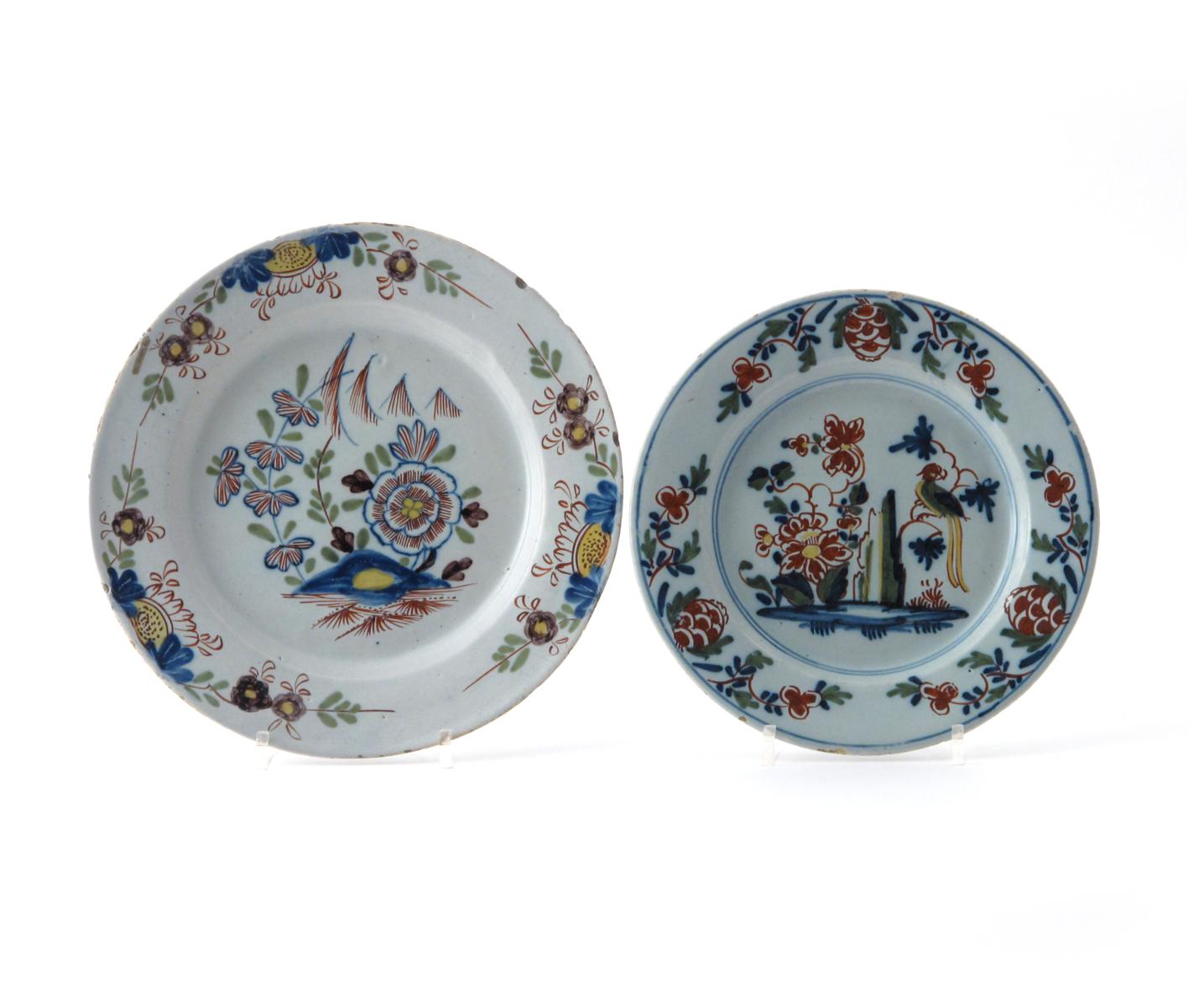 Two delftware polychrome plates mid 18th century