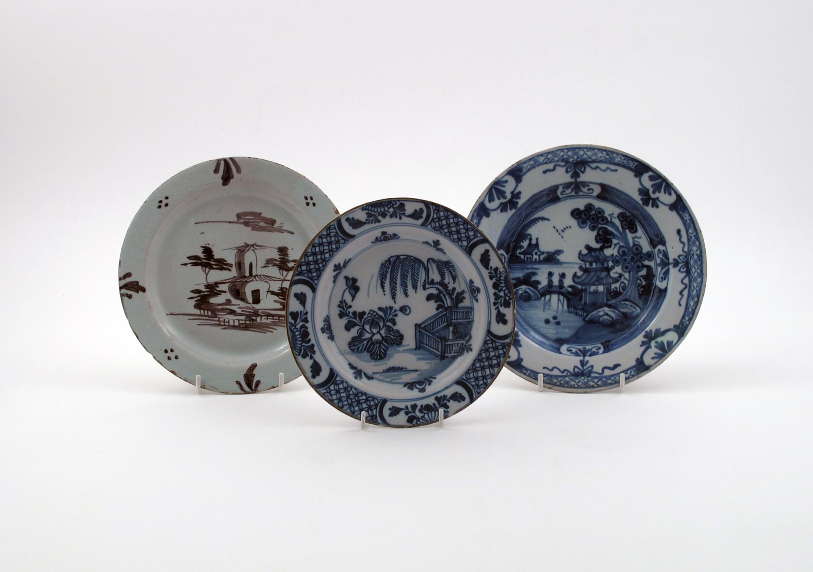 Three delftware plates 2nd half 18th century