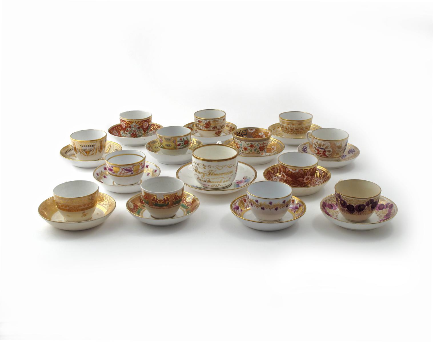 Fourteen English porcelain cups and saucers 19th century