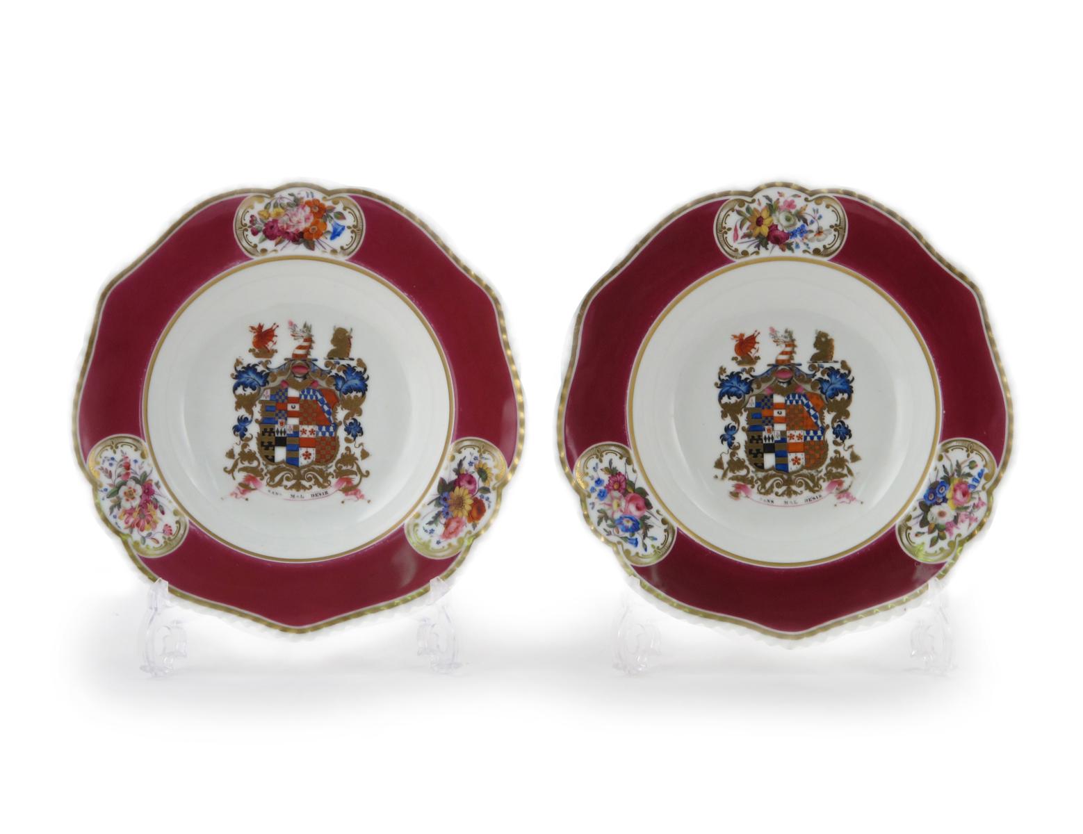 A pair of Chamberlain's Worcester armorial soup plates c.1827