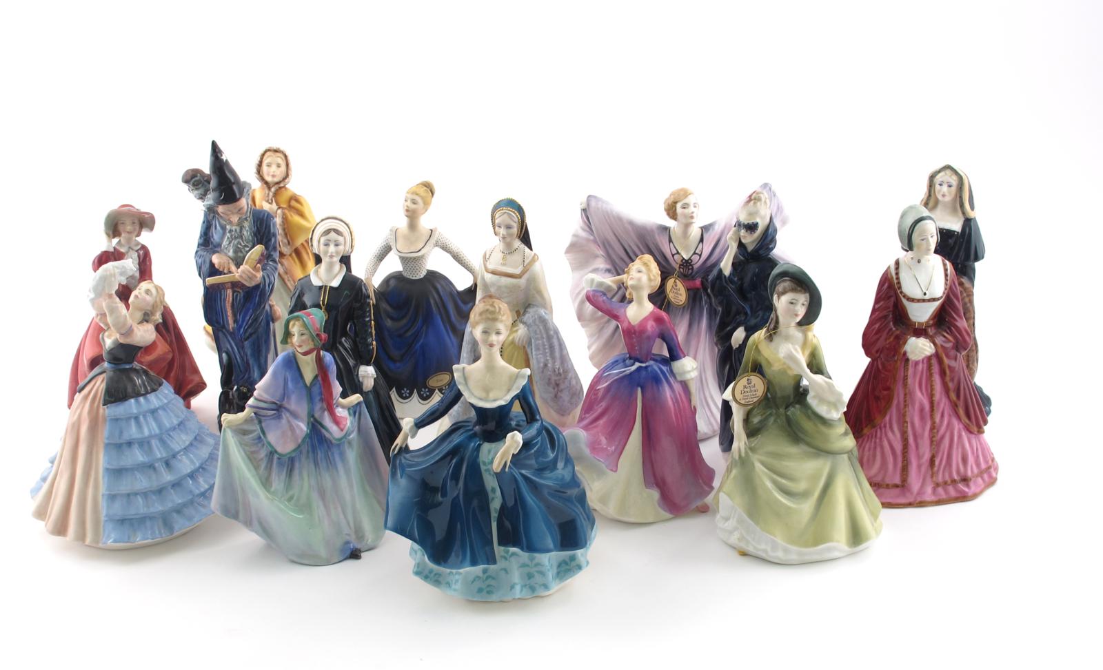 Ninety-four Royal Doulton and other figures, painted in colours printed marks, damages