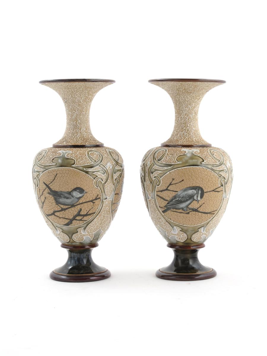 A pair of Doulton Lambeth stoneware vases by Florence Barlow