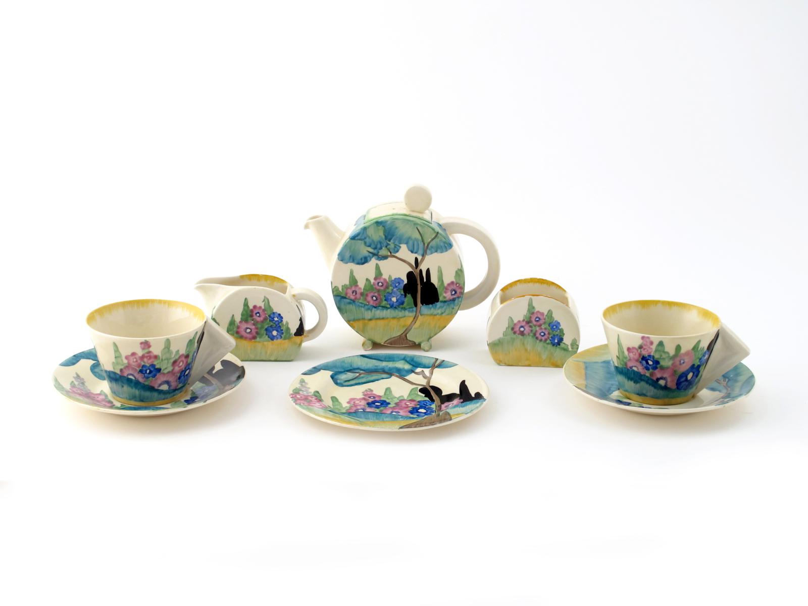 'Fragrance' a Clarice Cliff Bizarre Bon Jour tea for two