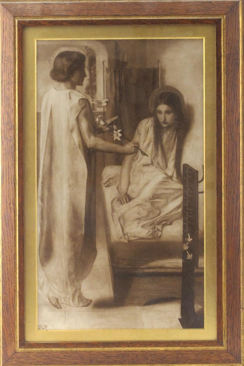 'The Annunciation' a sepia tinted printed from the painting by Dante Gabriel Rossetti