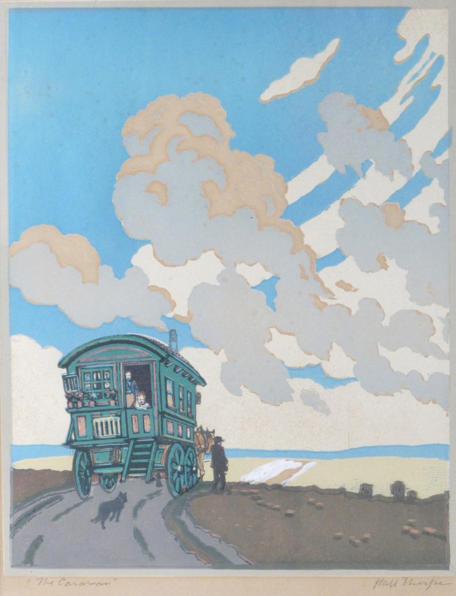 'The Caravan' a woodcut on paper by John Hall Thorpe