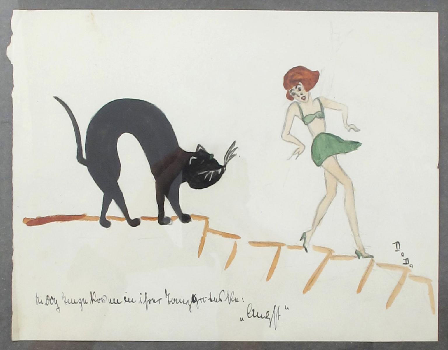 ‡Dorte Clara 'Dodo' Burgner' (1907-1998) Dancer with a Black Cat an original artwork design