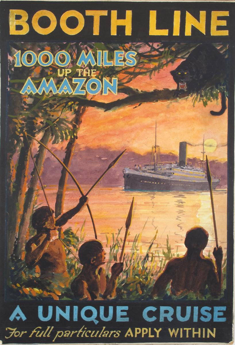 'Booth Line 1000 Miles Up The Amazon' an original artwork design on board by Charles Birchall Ltd